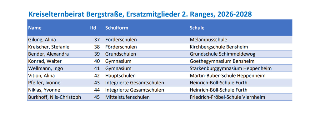 Zusätzlich wurden 25 Ersatzmitglieder gewählt, die die Arbeit des Kreiselternbeirats unterstützen und eng eingebunden bleiben.