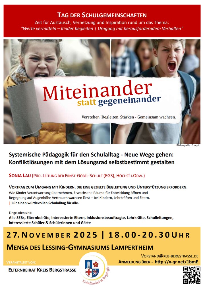 Im Alltag vieler Eltern und Schulen sind auffälliges Verhalten, Reibungspunkte und emotionale Belastungen keine Ausnahme mehr. Auch das Staatliche Schulamt hat 2025 zum Jahr der „Herausfordernden Schüler*innen“ erklärt. Daher möchten wir das Thema aufgreifen – mit zwei praxisnahen Impulsen, viel Raum für Austausch und konkreten Einblicken aus der Elternarbeit.